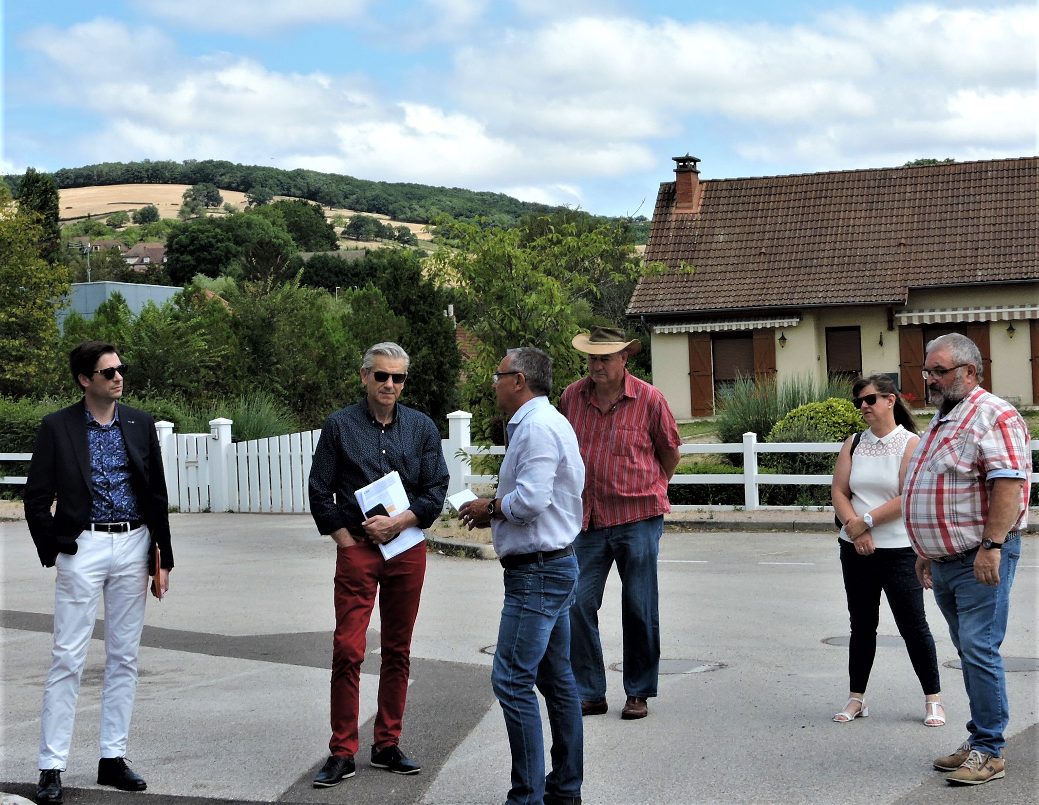 Mardi, dans le cadre de ses visites estivales des communes du territoire, David Marti, président de la Communauté Urbaine Creusot-Montceau, accompagné de Laurent Bouquin Directeur général des services de la CUCM a été accueilli par Didier Laubérat le maire et ses 3 adjoints. Ils se sont rendus dans la nouvelle rue Rose Létang où a été construite la micro-crèche et la résidence pour personnes âgées. La micro-crèche et la route d'accès ont été financés en partie par la CUCM dans le cadre du programme Leader ( fonds européens).