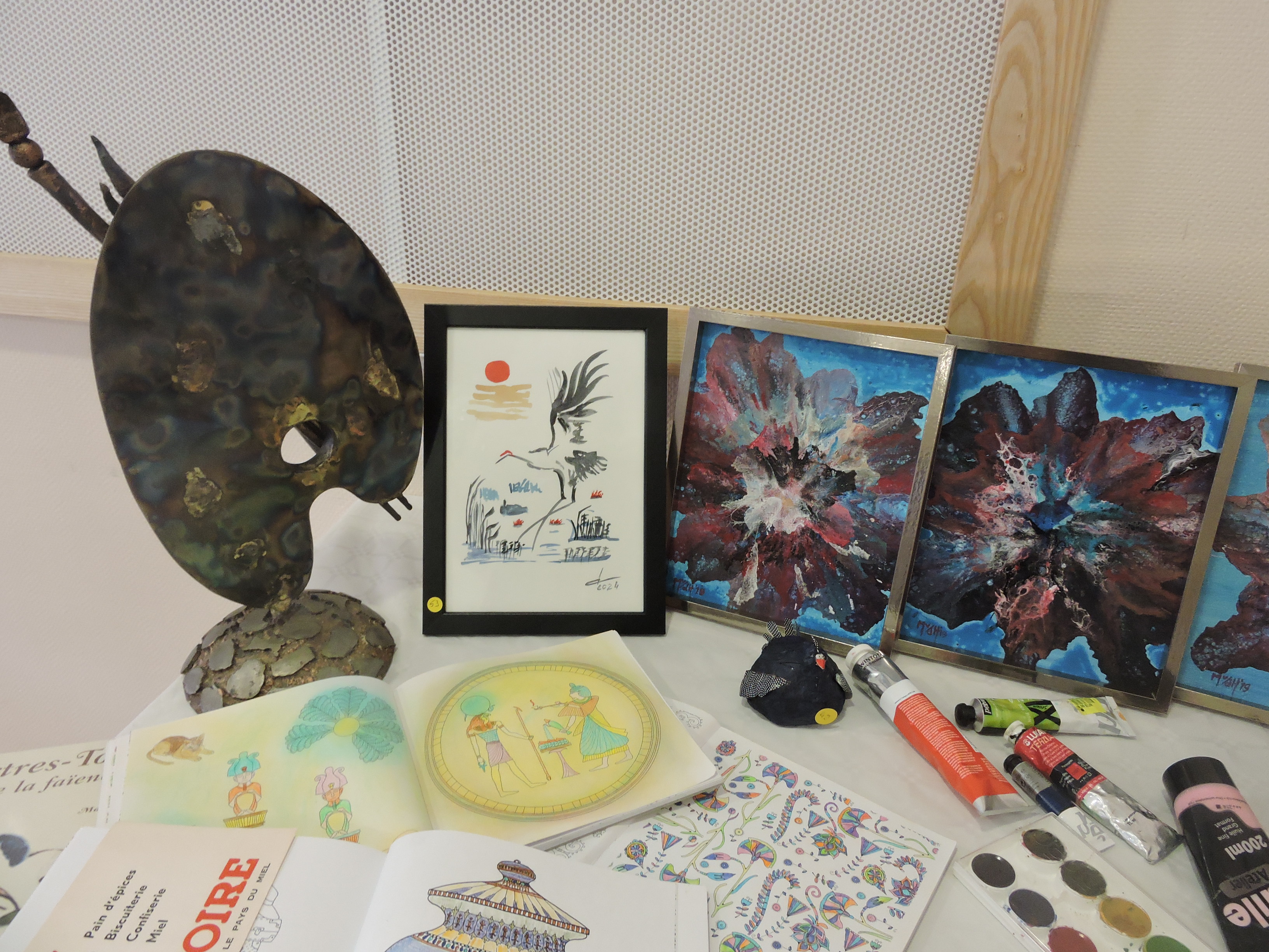 Samedi et dimanche, au centre associatif 9 membres de l'atelier peinture du trait d'union ont exposé leurs réalisations.