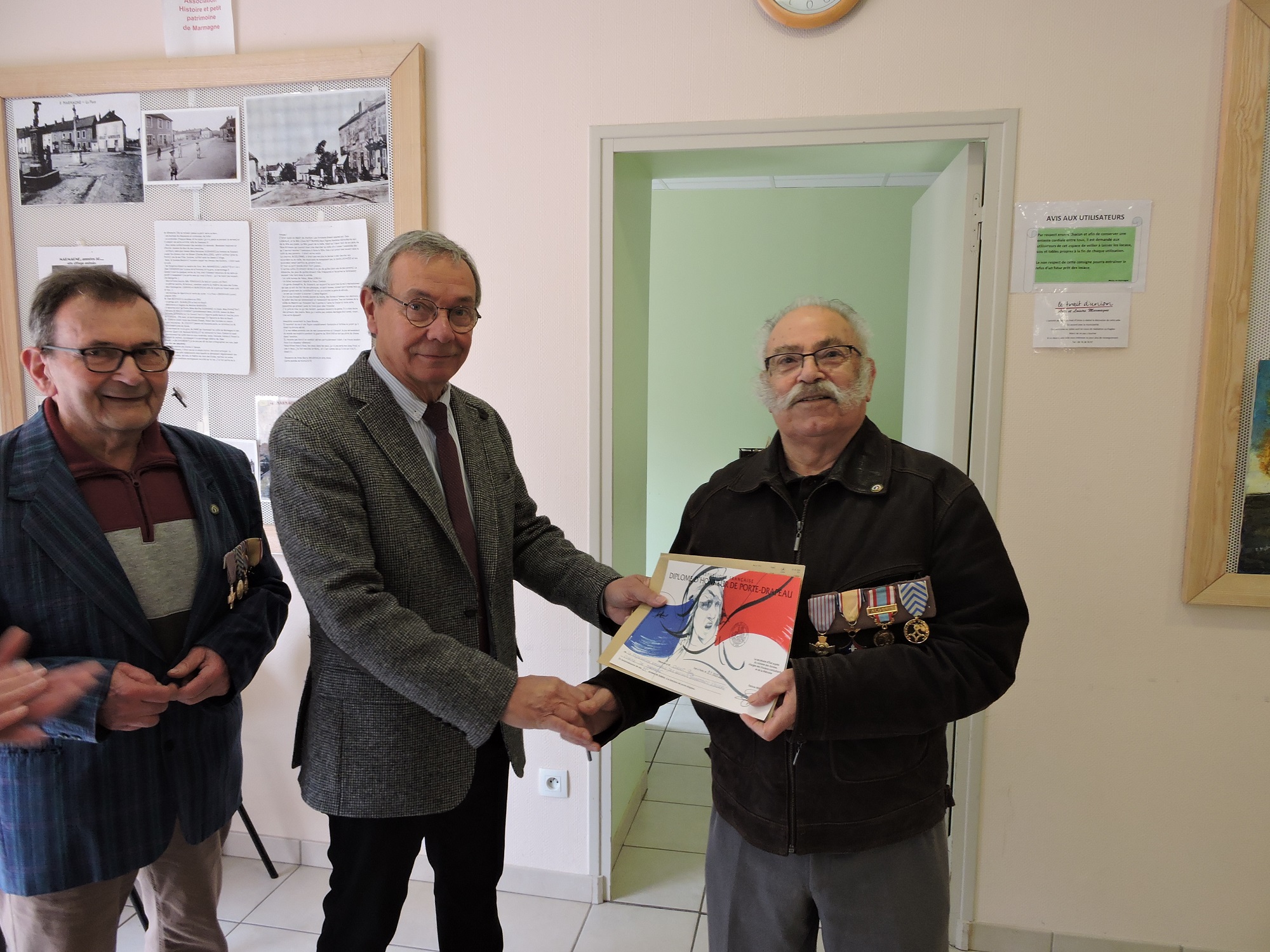 Dimanche matin à la fin de la cérémonie de commémoration du 19 mars, 2 membres du comité local FNACA de Marmagne Guy Cornot et Guy Marciniak se sont vus remettre par le maire Didier Laubérat récompenses et médailles pour 25 et 10 ans de fidélité en temps que portes drapeaux.