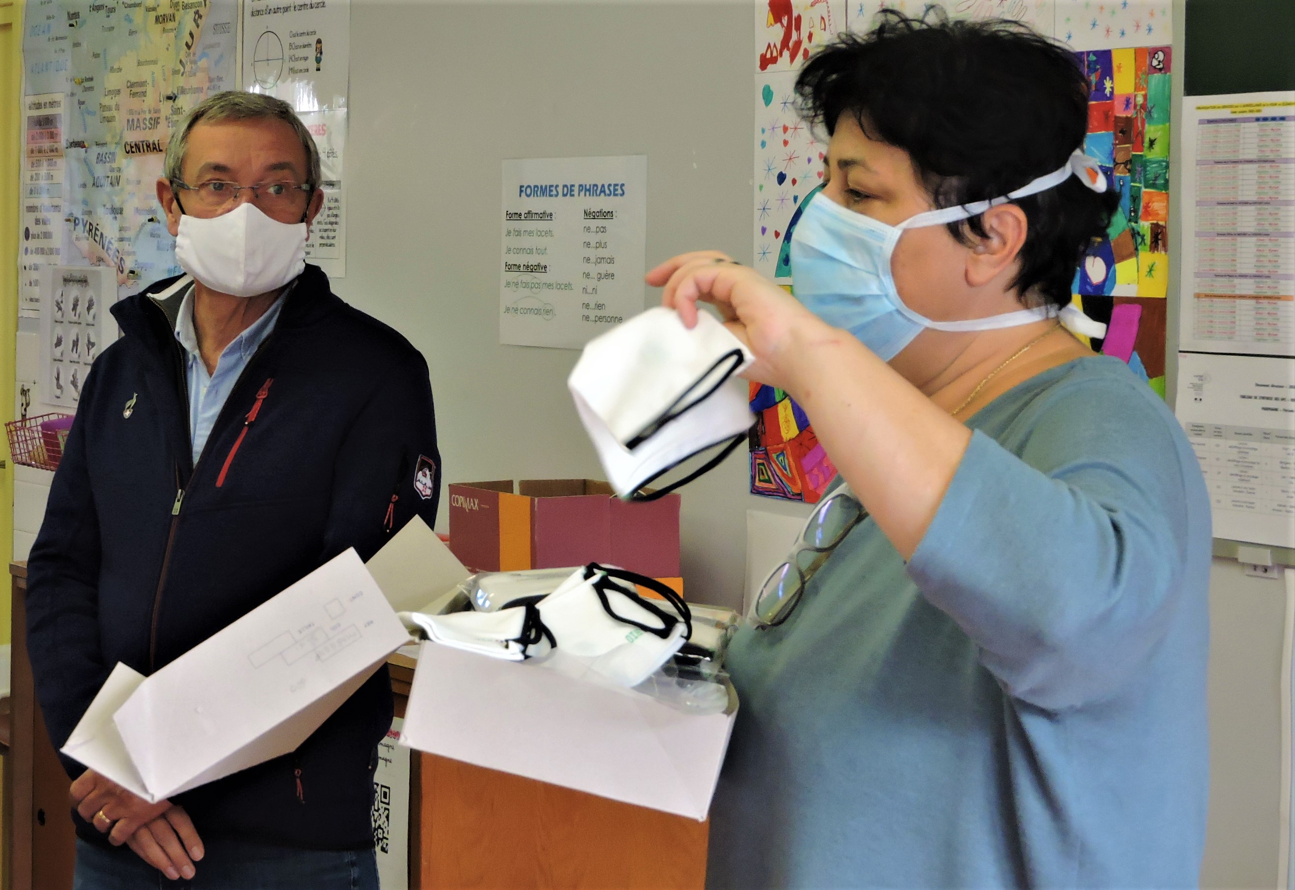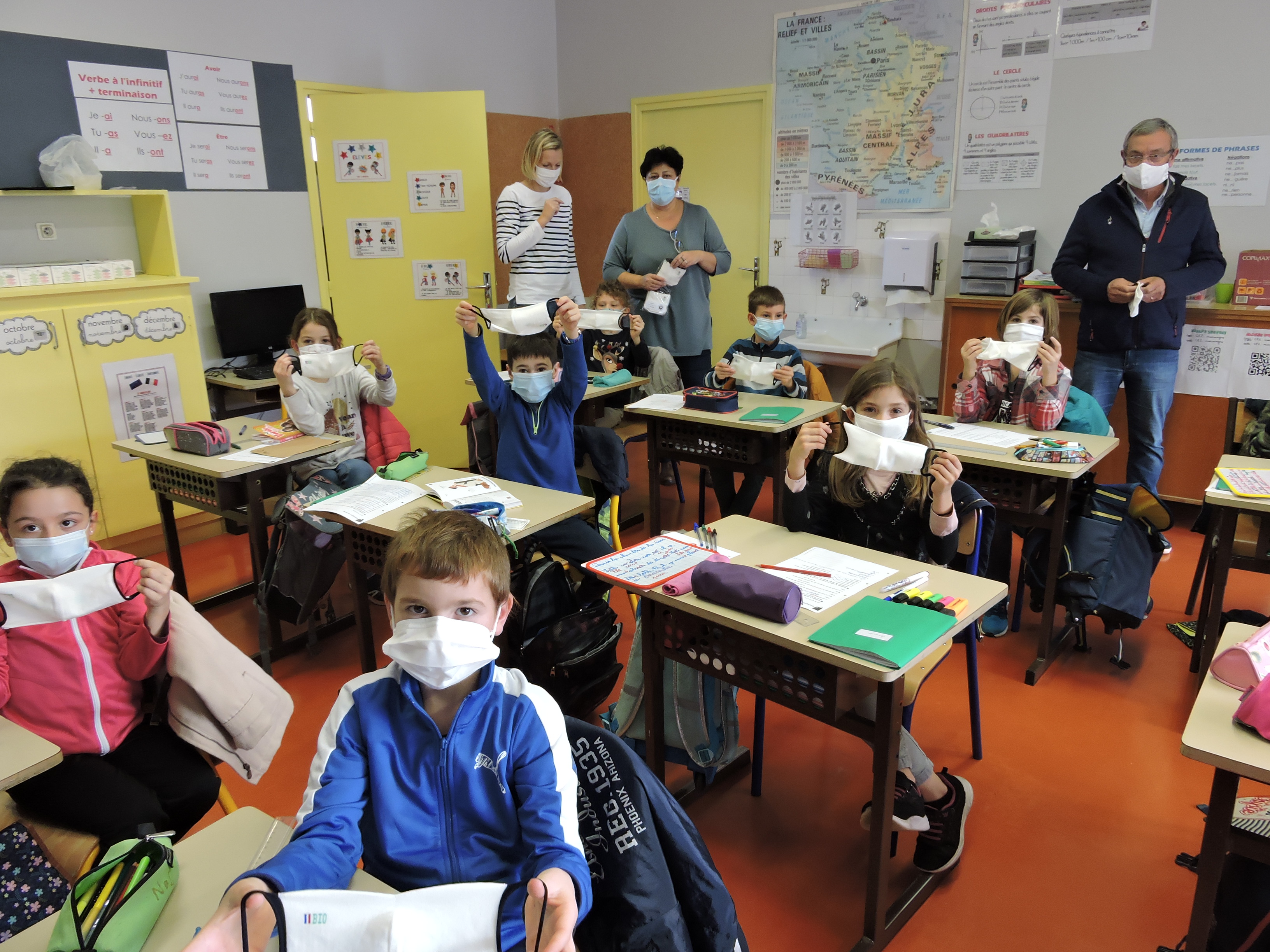 Mardi après-midi, au nom de la municipalité le maire Didier Laubérat s'est rendu à l'école pour remettre aux 80 élèves de niveau élémentaire des masques de catégorie 1, lavables, adaptés à leur âge . Les masques ont été achetés chez les établissements de la Manufacture Perrin à Montceau, spécialisés dans la chaussette haut de gamme, qui en ce moment se sont reconvertis dans le masque pour enfant.