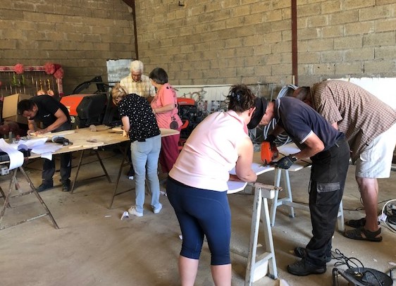 Samedi matin les membres de l'atelier décorations de Noël composés d'élus et de membres du trait d'union se sont retrouvés dans les locaux techniques de la commune pour débuter la fabrication des décors de Noël qui seront mis en place au niveau de la bande de pelouse en contrebas de la mairie le long de la rue du bourg. Pour cette première séance de travail les premiers décors bois ont été fabriqués. Une alternative aux illuminations habituelles, devenues trop couteuses pour le budget de la commune.