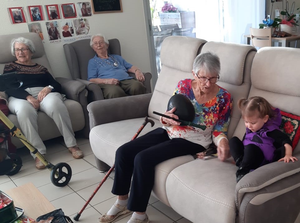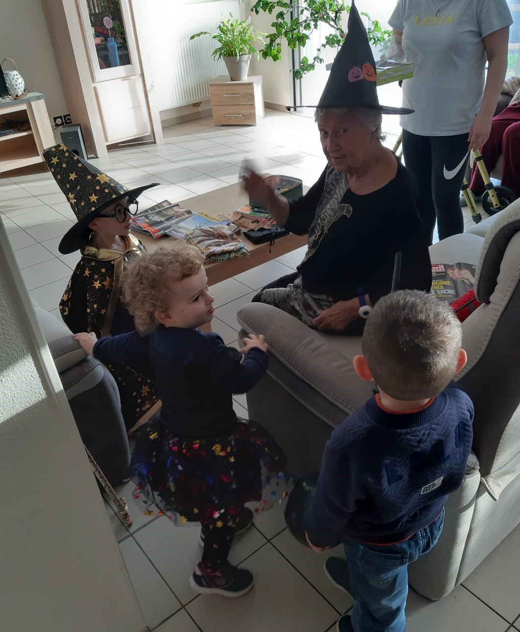 «Halloween intergénérationnel : Le 31 octobre, les enfants de la micro crèche étaient invités par leurs voisins et voisines de la Résidence Ages&Vie à venir partager le goûter d’Halloween. Petits et grands étaient ravis de ce moment de jeux, de partage et de gourmandises ! »