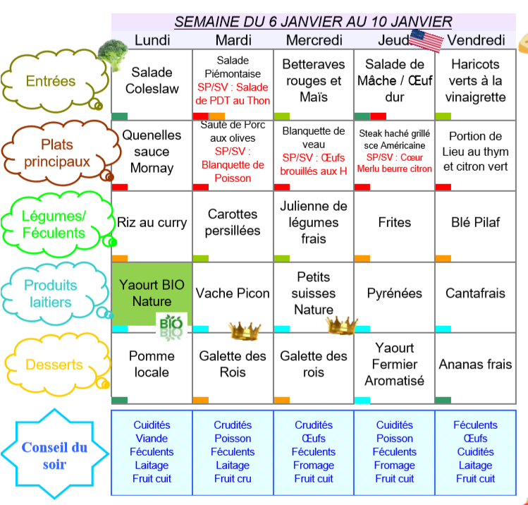 Les menus détaillés des semaines de janvier et février sont consultables dans la rubrique cantine