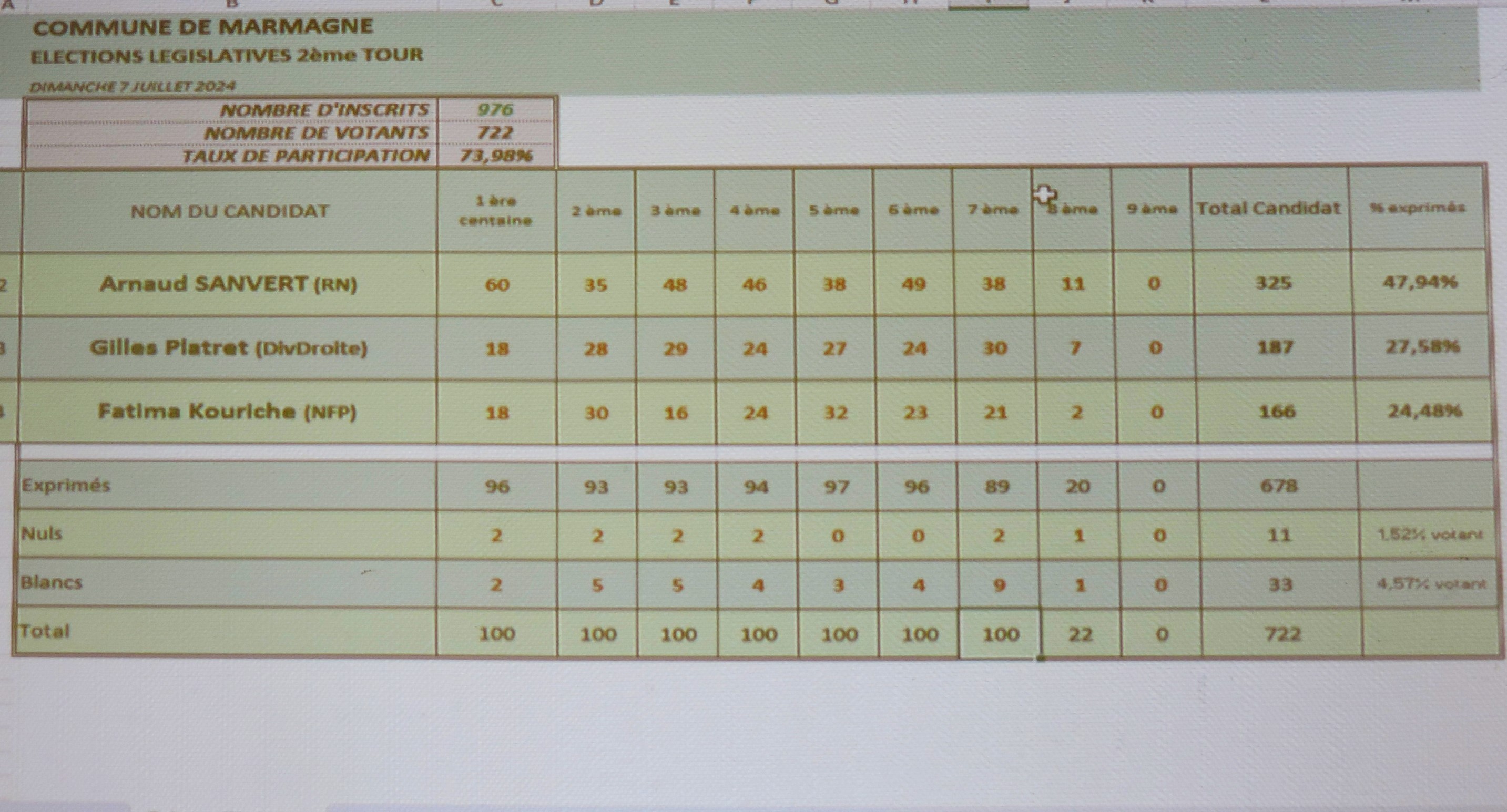 Les résultats des élections législatives 2è tour à Marmagne