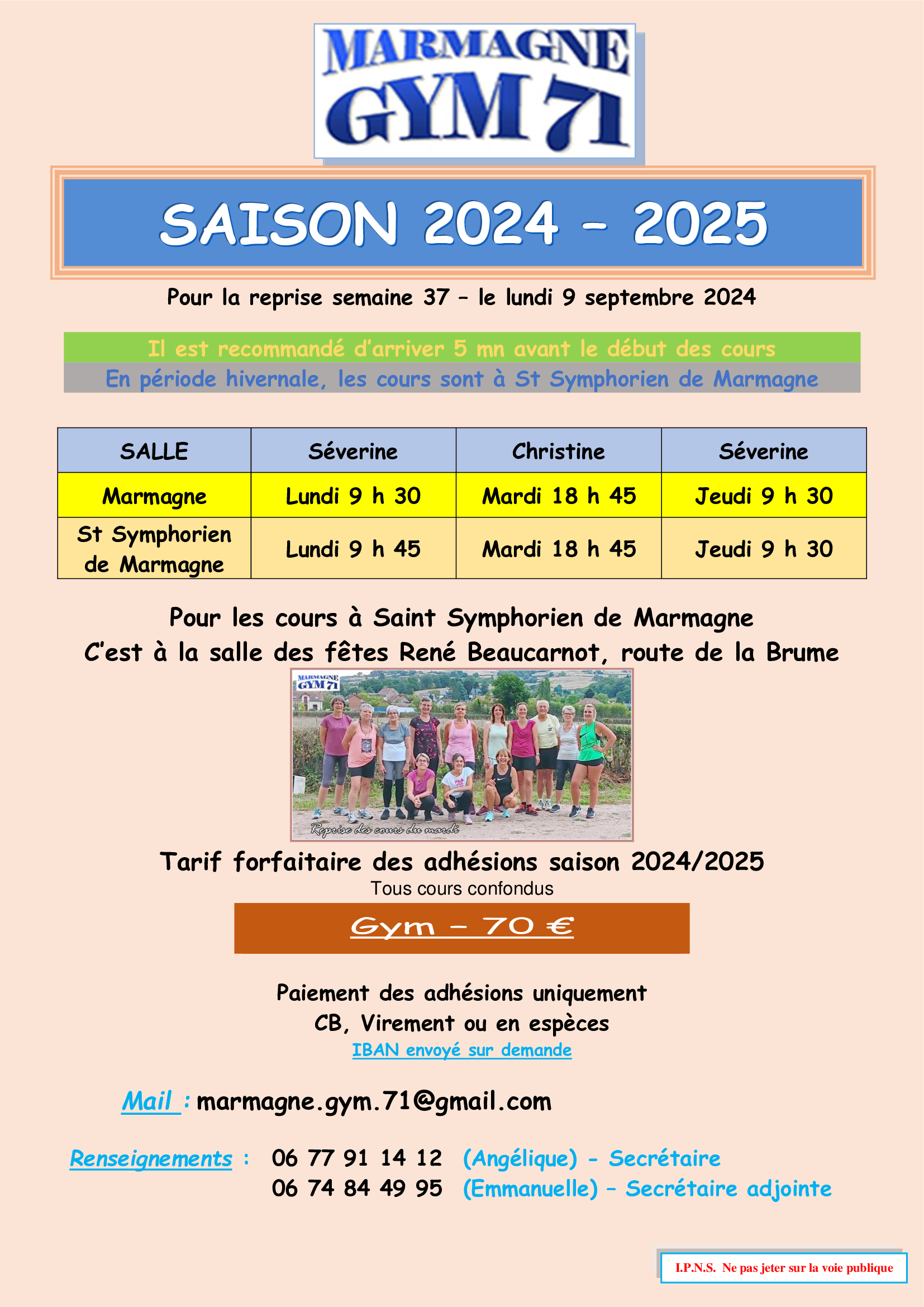 Une nouvelle saison s'annonce à Marmagne Gym 71